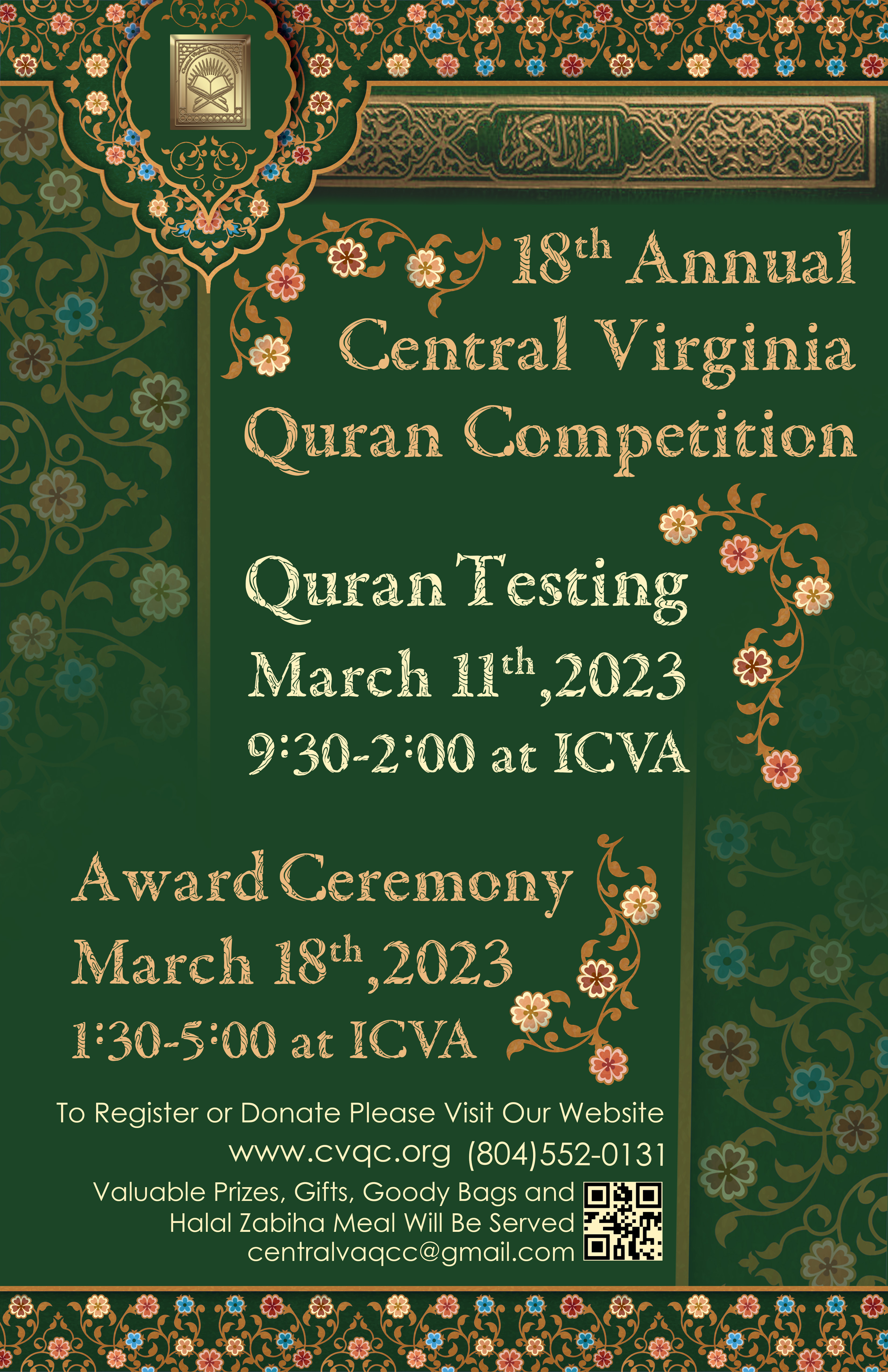 All praise and thanks are due to Allah the Most Generous the Most Benevolent. We are happy to welcome you all back to a new Central Virginia Quran Competition.